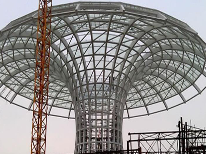 二、球形网架结构因其结构新颖,受力合理,自重轻、用钢量低等优点。如大型体育场馆球形张家口螺栓球网架、公共场馆球形网架、电厂张家口螺栓球网架、水泥工业球形网架、仓储物流球形网架、张家口干煤棚工业球形网架、张家口收费站张家口加油站球形网架、展览中心、影剧院、商场、航站楼、候车厅、工厂张家口车间、仓库、电视塔等球形螺栓球节点网架。国内球形网架结构主要分为:张家口焊接球节点网架及螺栓球节点网架两种。螺栓球节点网架其构件工厂内加工量较大,现场安装便捷,适用于现场工期紧,张家口施工条件、用电量受制约,网架形状复杂、张家口杆件定位困难的异形结构。螺栓球节点球形网架系统基本由张家口杆件、螺栓球、支撑支座等组成。按照节点形式可分为交叉张家口桁架体系、四角锥体系、三角锥体系等。支撑方式多为固定支座支撑。对于大面积、大跨度及有特殊受力或伸缩要求的网架结构可采用橡胶支座、滑移支座、球铰支座等支撑形式,以满足结构自身的受力稳定、均衡,便于内力释放等设计要求。